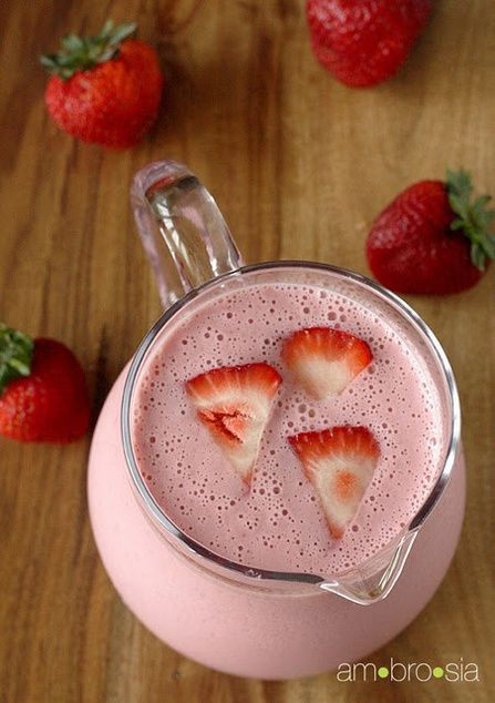 Strawberry Lassi - Just Strawberries, Honey, Greek Yogurt & Crushed Ice.